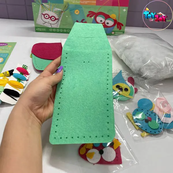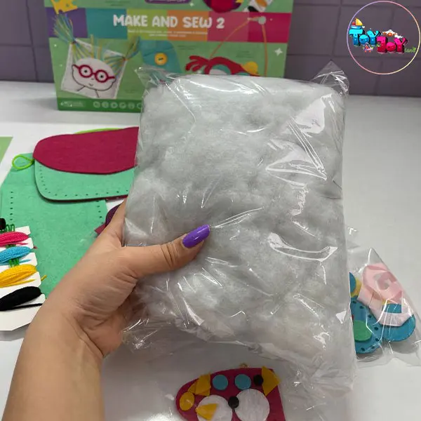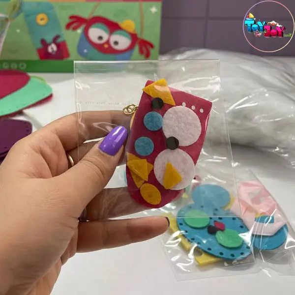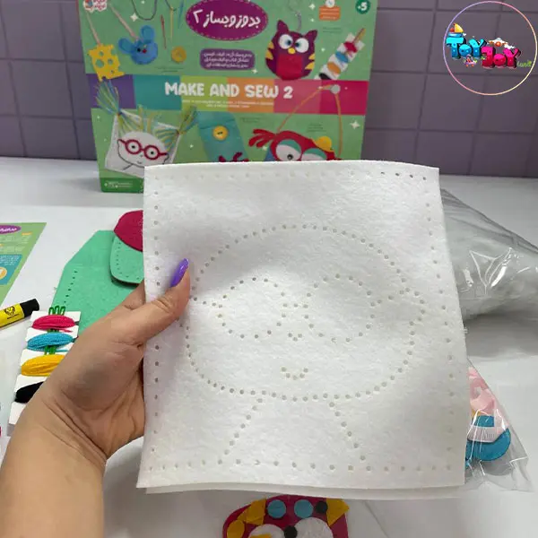 در این بسته، کودکان میتونن کیف جغدی 🦉، کوسن دختر مو بلند 👧، کیف موبایل 📱، نشانگر کتاب موشی 🐭 و جاکلیدی گربه 🐱 رو با نخ و سوزنهای بیخطر خودشون بدوزن، تزئین کنن و از خلاقیتشون لذت ببرن.