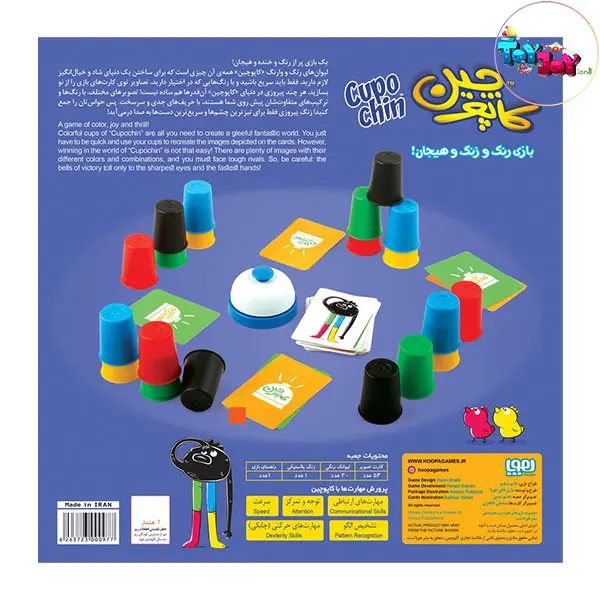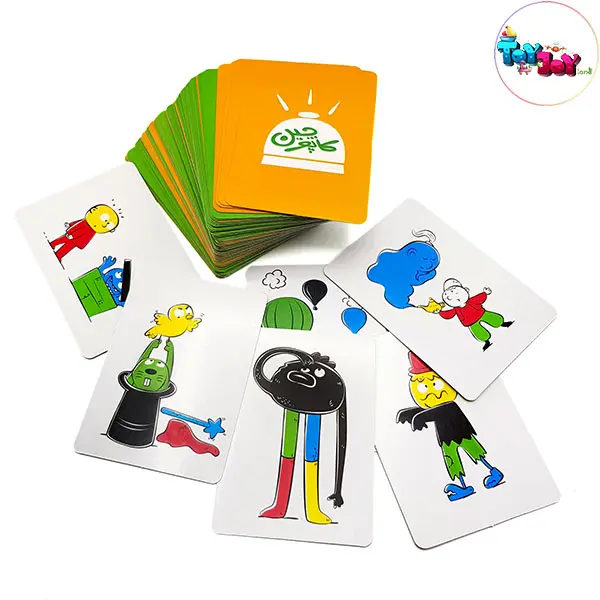 54 کارت تصویر، 20 لیوان رنگی، 1 عدد زنگ، دفترچه راهنما