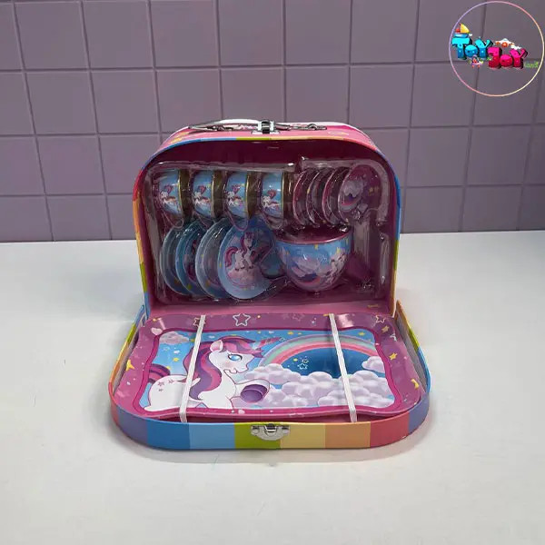 ست چایخوری فلزی کیفی یونیکورن یک انتخاب فوقالعاده برای بچههایی است که عاشق مهمانیهای خیالی، بازیهای نقشآفرینی و دنیای فانتزی هستند. این ست زیبا و باکیفیت شامل ۱۴ تکه جذاب شامل قوری، فنجانها، بشقابها و نعلبکیهای فلزی رنگارنگ است که هم بادوام هستند و هم بهراحتی تمیز میشوند و همگی در یک چمدان بسیار زیبا جمع شده اند.