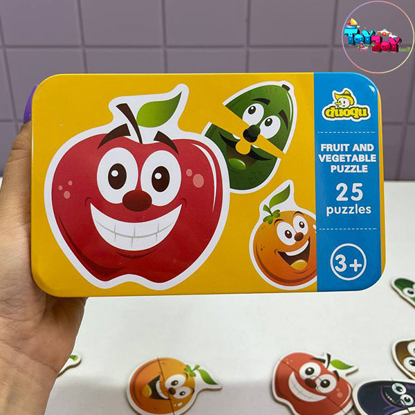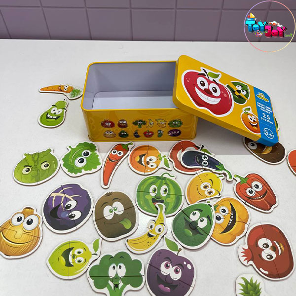 پازل دو تکه جعبه فلزی طرح میوه و سبزیجات – 25 پازل