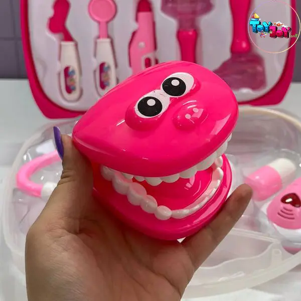 در این مجموعه یک دهان بازشو قرمز رنگ با دندانهای آموزشی قرار دارد که دو چشم کارتونی روی آن طراحی شده و بازی را برای کودک جذابتر میکند. همچنین گوشی پزشکی دارای دکمه و چراغ قلبی است که با فشردن دکمه، چراغ روشن میشود و حس واقعیتری به بازی میدهد.