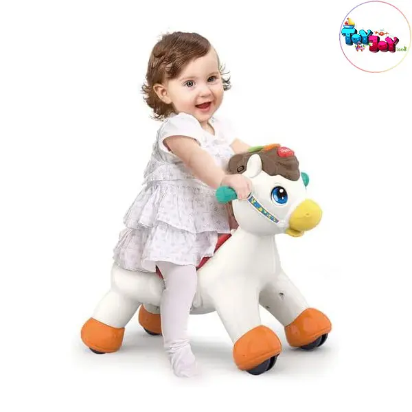 بازی با این اسبک به تقویت تعادل، هماهنگی حرکتی، مهارتهای حرکتی درشت، درک علت و معلول و اعتمادبهنفس کودک کمک میکند و انتخابی عالی برای رشد همهجانبه کودک در سالهای ابتدایی زندگی است.