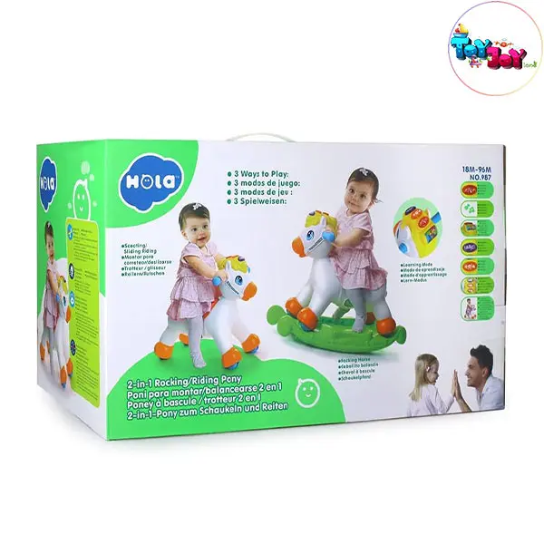 این اسبک دارای دستههای ارگونومیک، نشیمن راحت و پایه ایمنی کنترلکننده دامنه تاب است که امنیت کودک را هنگام بازی تضمین میکند. همچنین وجود محفظه نگهداری وسایل در زیر صندلی آن را به یک اسباببازی کاربردیتر تبدیل کرده است.