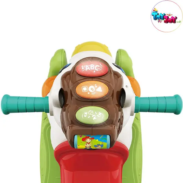 در حالت آموزشی (Learning Mode) کودک با فشردن دکمههای رنگی نورانی، با حروف الفبا، اعداد، رنگها و اشکال آشنا میشود. پخش آهنگهای شاد و افکتهای صوتی جذاب باعث افزایش توجه و تمرکز کودک میشود.