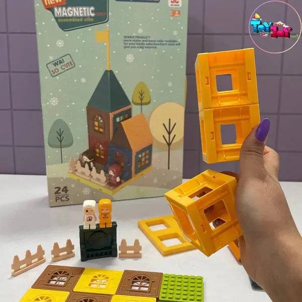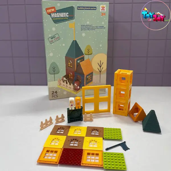 لگو مگنتی خانهسازی ۲۴ قطعه | بلوک مغناطیسی ساختنی کودک