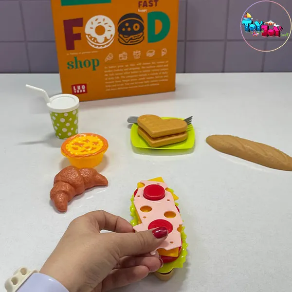 ست اسباببازی غذای فستفودی کودک یک مجموعه جذاب و خوشرنگ برای بازیهای نقشآفرینی و خالهبازی است که کودک را وارد دنیای آشپزی و رستورانداری میکند. این ست شامل انواع خوراکیهای محبوب مثل ساندویچ، کروسان، وافل، چیزکیک، نوشیدنی و ظروف سرو بوده و با طراحی واقعگرایانه، تجربهای شبیه دنیای واقعی را برای کودک فراهم میکند.