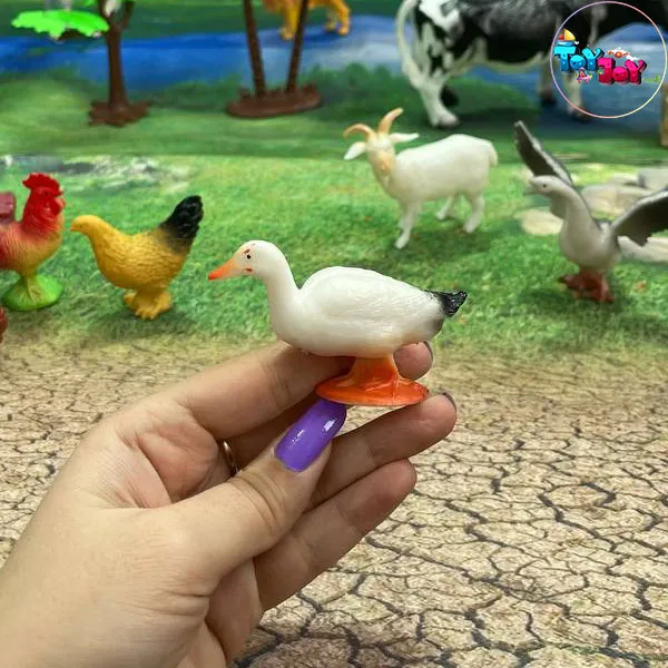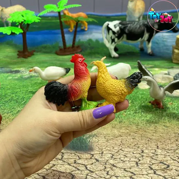 حیوانات اهلی مزرعه شامل گاو، گوسفند، بز، اسب، سگ، مرغ، خروس، اردک، جوجه و سایر حیوانات + سفره بزرگ بازی مزرعه