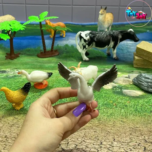 این مجموعه شامل فیگور حیوانات اهلی مزرعه مانند گاو، گوسفند، بز، اسب، سگ، مرغ، خروس، اردک و… به همراه سفره بازی بزرگ با طرح مزرعه و کیف دستهدار قابل حمل میباشد که امکان بازی گروهی، یادگیری، داستانسازی و سرگرمی طولانیمدت را برای کودک فراهم میکند.
