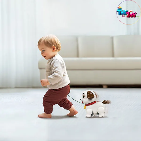 این اسباببازی بیش از ۲۰ صدا و آهنگ مختلف شامل ملودیهای شاد، افکتهای صوتی جذاب و آموزش حروف و اعداد را پخش میکند که نقش مهمی در رشد شنیداری، زبانی و شناختی کودک دارد. همچنین سیستم برخورد با مانع و تغییر مسیر خودکار (Bump-and-Go) باعث میشود سگ هنگام حرکت مسیر خود را تغییر داده و تعامل کودک با بازی افزایش یابد.