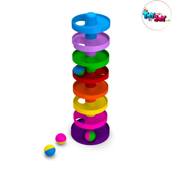توی بازی توپ و سرسره ما 4 تا توپ رنگی صدا دار داریم که باید کودک با دستهاش اون ها رو بداره و روی سطح شیبدار بگذاره تا توپ روی صفحات بچرخه و پایین بیاد. کودک توپ رو باید دنبال کنه. برداشتن توپها و دنبال کردن اونها و شنیدن صدای توپ میتونه حواس پنج گانه بچه ها رو تقویت کنه.