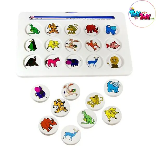 دونه دونه باید کارتهای تصویری رو داخل پایه بذاریم و از کودکان بخوایم که کشابه تصاویر روی کارتها رو از بین کاشی ها و قطعات پلاستیکی پیدا کنن و جاگذاری روی صفحه پایه رو انجام بدن.